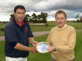 The Men's event was set up with two fields of nine playing over 8 holes with the winners of both groups going head-to-head down the 9th hole.  Bob Bridges - who has been seriously ill - battled through the first group overcoming David Brown on the 8th.  David Smallman edged Adrian Patterson to lead the second group.   In a very sporting gesture - David Smallman immediately conceded the 9th to Bob without a shot being taken.  Below, Chris Collinson presents Bob with his trophy in what was a very popular win.