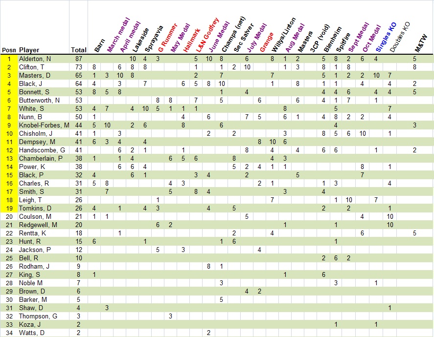 The Order of Merit is designed to encourage entry by all men into trophies (men's and mixed), medals and knock-out tournaments.