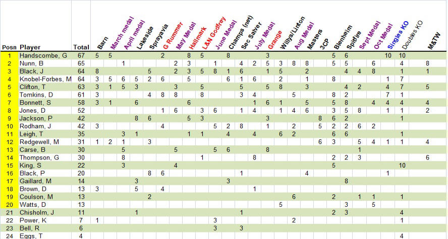 The Order of Merit is a season-long program designed to encourage entry by all men into trophies (men's and mixed), medals and knock-out tournaments.